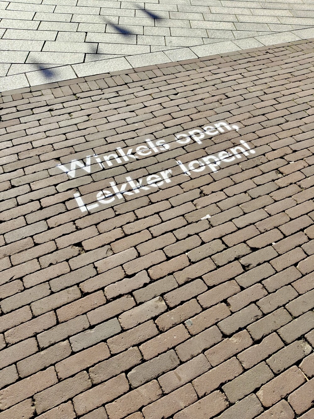 Om fietsers die het verbod overtreden eens op een andere manier bewust te maken van hun gedrag, is de slogan 'winkels open fietsers lopen' bedacht. In navolging van Venray waar de slagzin al eerder is toegepast.